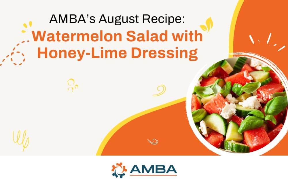 When the dog days of summer kick in, nothing is more refreshing than a delicious (and healthy) watermelon salad. This month’s recipe, courtesy of AMBA, perfectly combines watermelon, cool cucumbers, salty feta, and a pop of fresh mint. It’s sweet and salty, while the lime-honey dressing adds an extra kick.