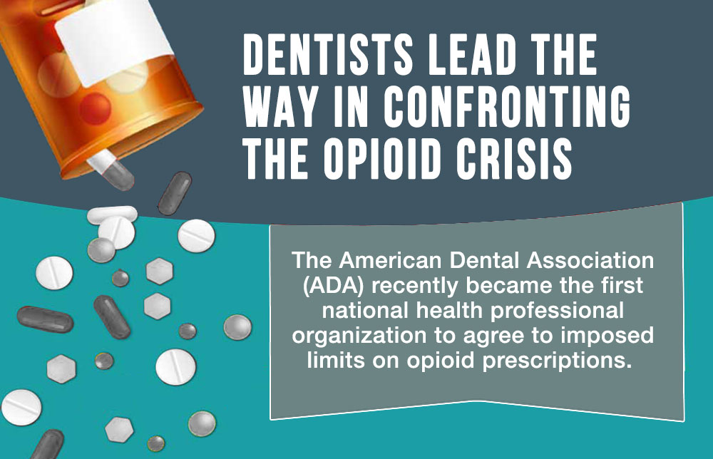 The American Dental Association (ADA) recently became the first national health professional organization to agree to imposed limits on opioid prescriptions. In fact, dentists already have been writing nearly 500,000 fewer opioid prescriptions over the past five years.