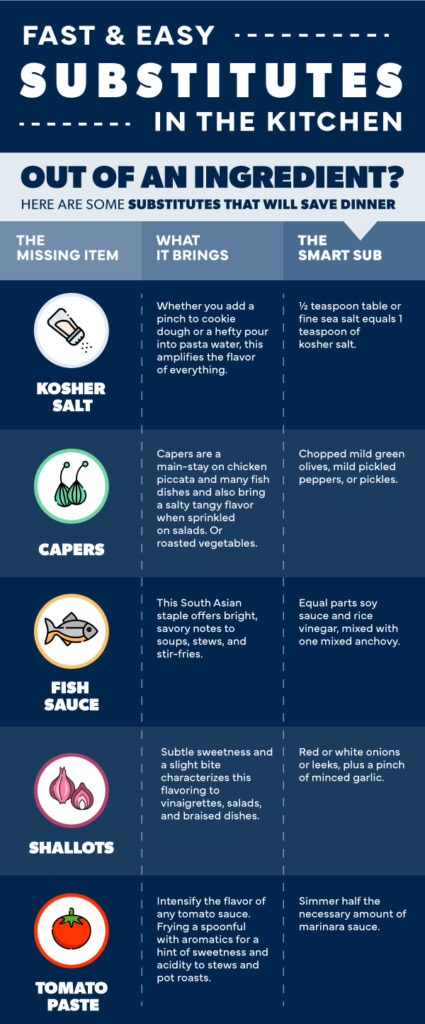 Out of an ingredient? Here are some substitutes that will save dinner.