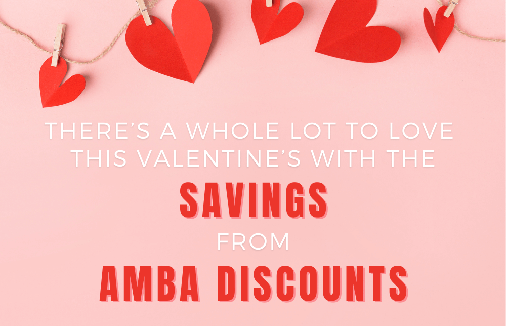 Showering your loved one with gifts for Valentine’s can be fun…and expensive. But AMBA Discounts gives you access to amazing savings on hundreds of gift and ways to celebrate the special day. Here are just some of the ways we connect you with a world of savings so you can say “Be Mine”, for less.